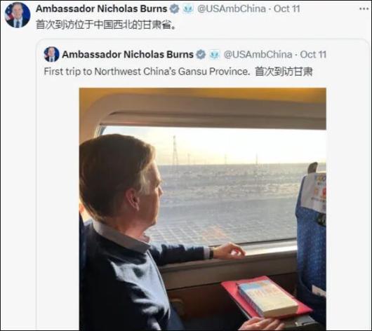 去年10月,伯恩斯乘坐高铁前往甘肃