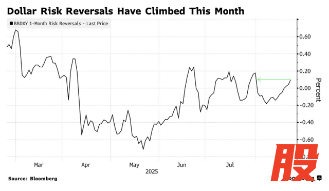 彭博美元现货指数的所谓“一个月期风险逆转指标”本月以来一直在上升